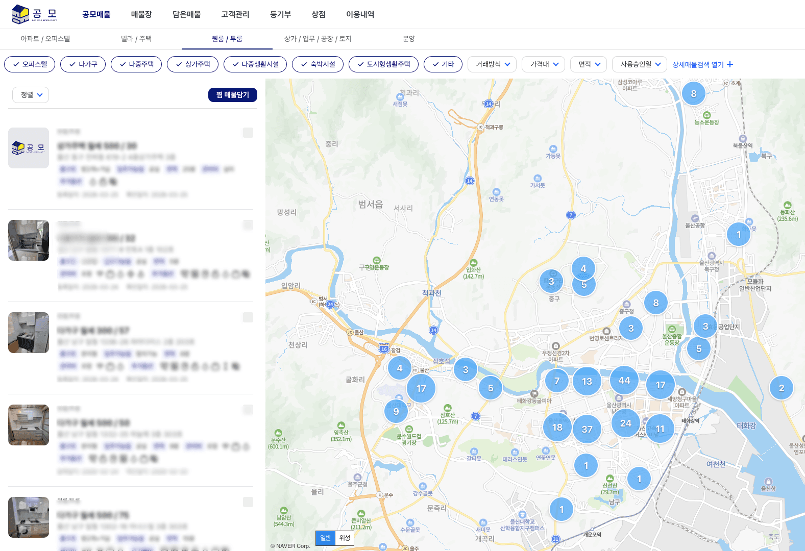 공모가 수집한 울산 지역 부동산 매물을 유형별로 한눈에 확인합니다.
