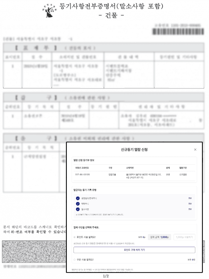 계약 전 반드시 확인해야 하는 등기부 데이터를 공모 서비스 안에서 간편하게 열람합니다. 외부 사이트 이동 없이 매물 확인부터 권리관계 분석까지 하나의 흐름 안에서 처리할 수 있습니다.